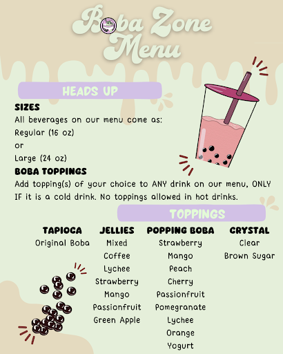 These two smoothie options at Boba Zone cater to a variety of tastes, and no matter what you’re in the mood for, you’ll find something to love. Whether you’re a fan of chocolate or prefer fruity blends, Boba Zone’s smoothies offer the perfect escape into deliciousness.